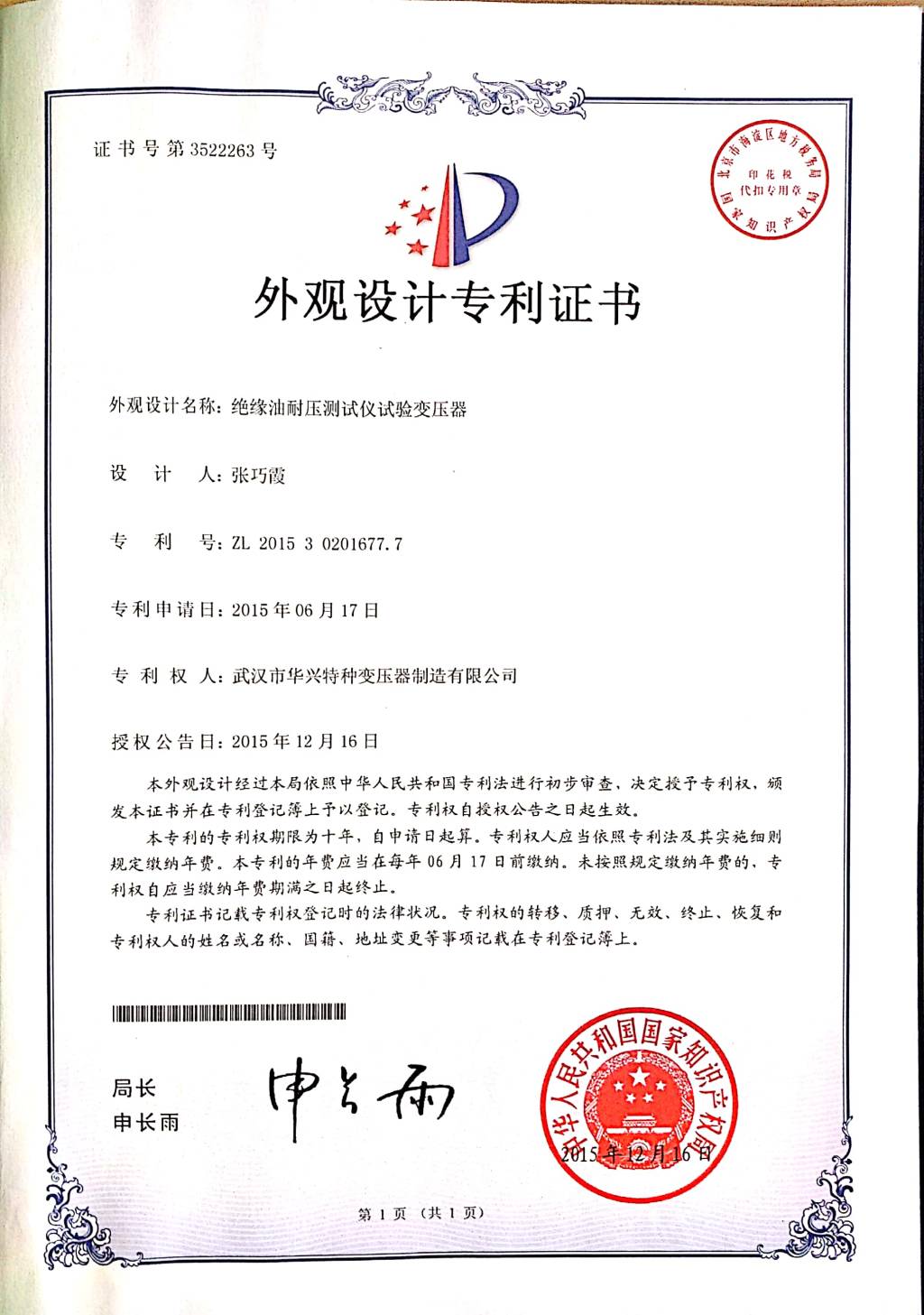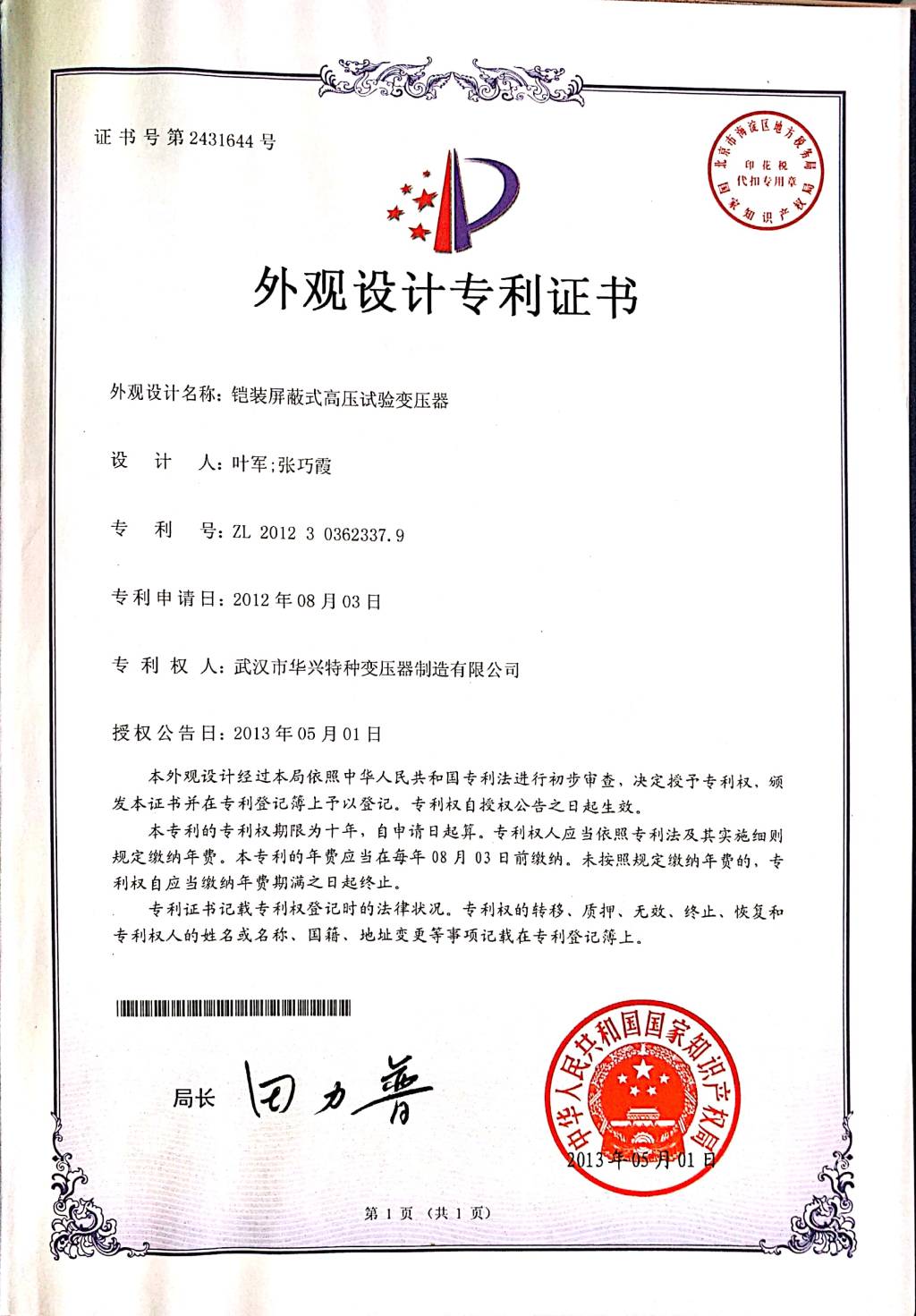 外观设计专利证书