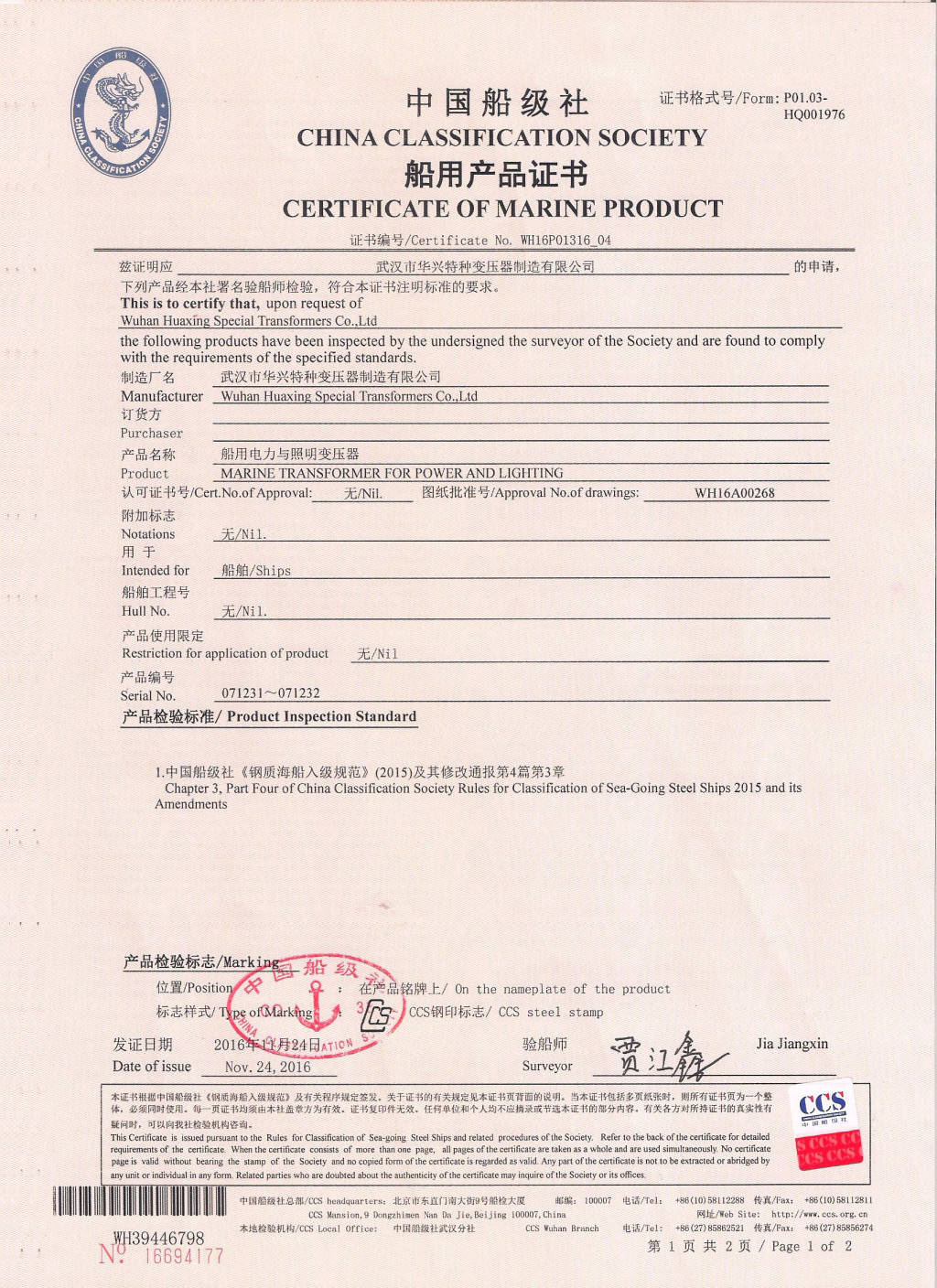 船用产品证书